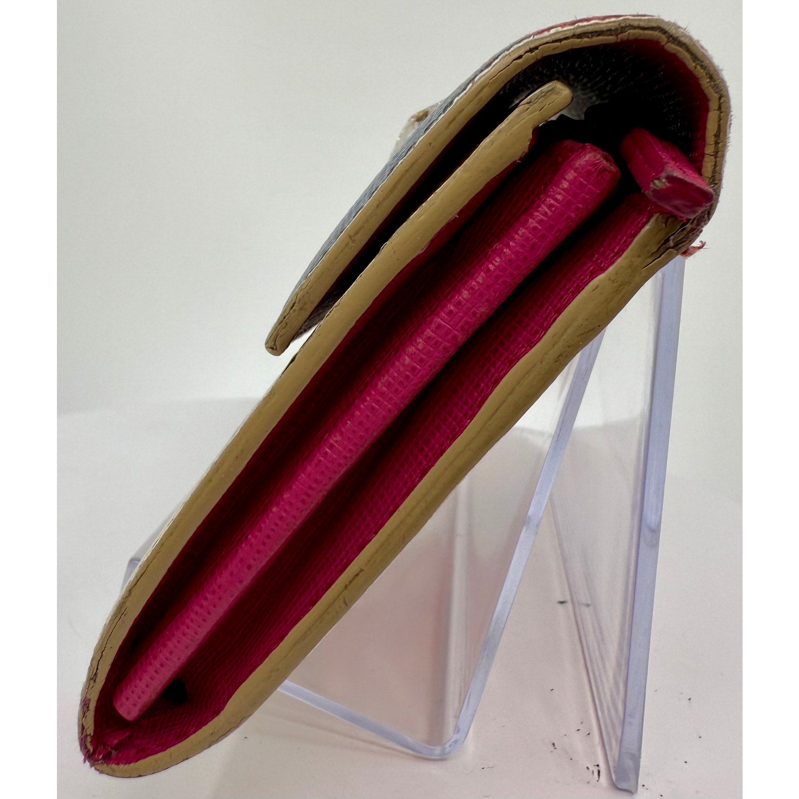 • Interior: Pink with multiple card slots, zippered compartment, and additional slip pockets
